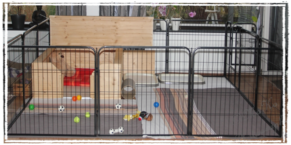 Um den 10. bis 14. Tag öffnen sich so langsam die Augen und Gehörgänge. Nun sind die Kleinen in der Lage Ihre Köpfchen zu heben und entdecken ihre Geschwister und ihre Mutti. So langsam nehmen die Baby's ihre Umwelt wahr. Nun ist es Zeit umzuziehen. Die Welpen ziehen in ihre Kinderstube, in ein großzügiges Welpengehege mit Kuschelecken und Spielzeug, zu uns in's Wohnzimmer. So sind die Welpen in unser Familienleben mit einbezogen und werden mit vielen Alltagsgeräuschen vertraut gemacht.